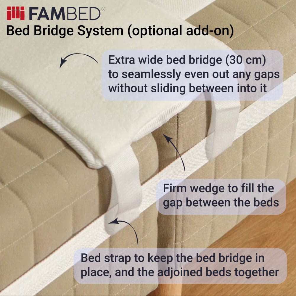 THANKS to Fambed, we now have the feeling of one big bed, where no one ends up in the gap between mattresses or worries about the little ones rolling out due to height differences. Moreover, the quality is great, so all in all, our sleep has improved significantly and, more importantly, remains undisturbed.